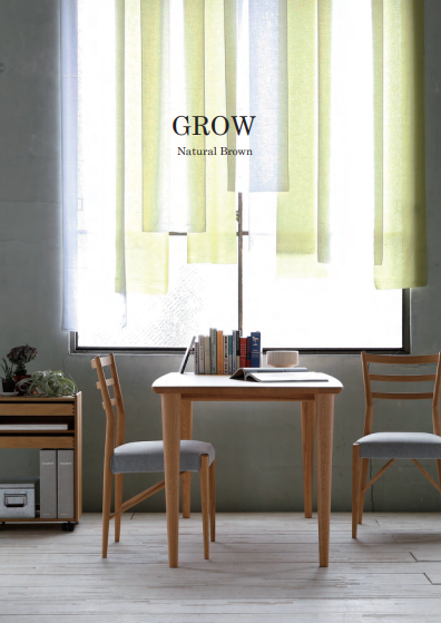 日進木工の代名詞ともいえるアイテムを取り揃えた、暮らしの中で共に育つ家具シリーズGROW(Natural Brown)です。